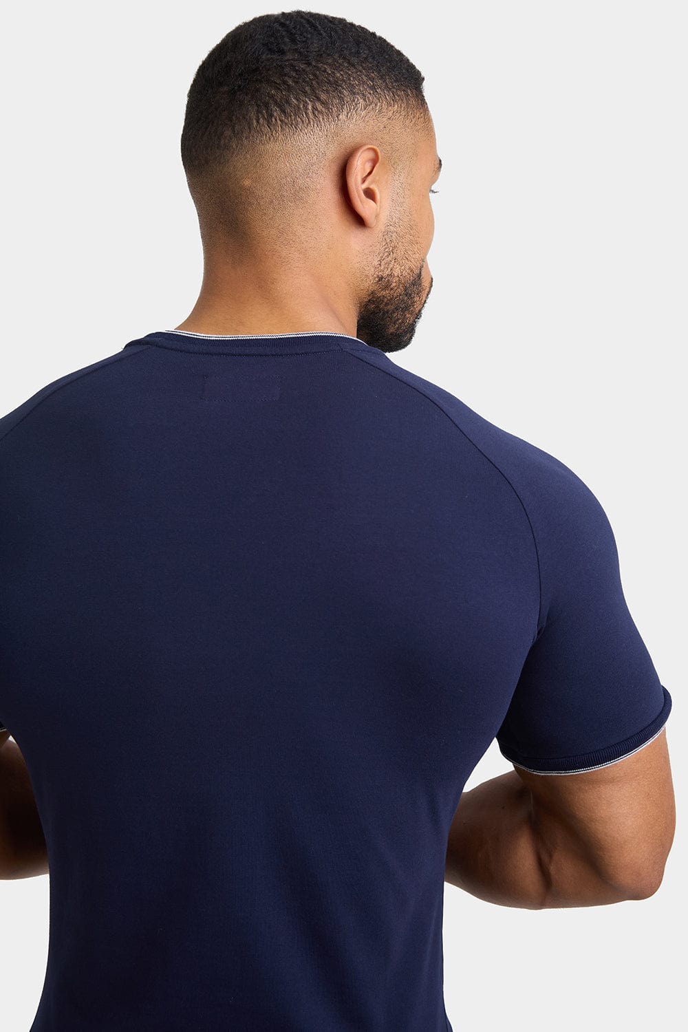 The Tipped T-Shirt is crafted from our finest premium cotton fabrication. Designed with our Signature Raglan Sleeve Cut, it effortlessly enhances your upper body, giving you a sculpted and refined appearance. The attention to detail shines through with knitted neck and cuffs trims, featuring a subtle white tipping that adds interest and a touch of sophistication to this classic piece.